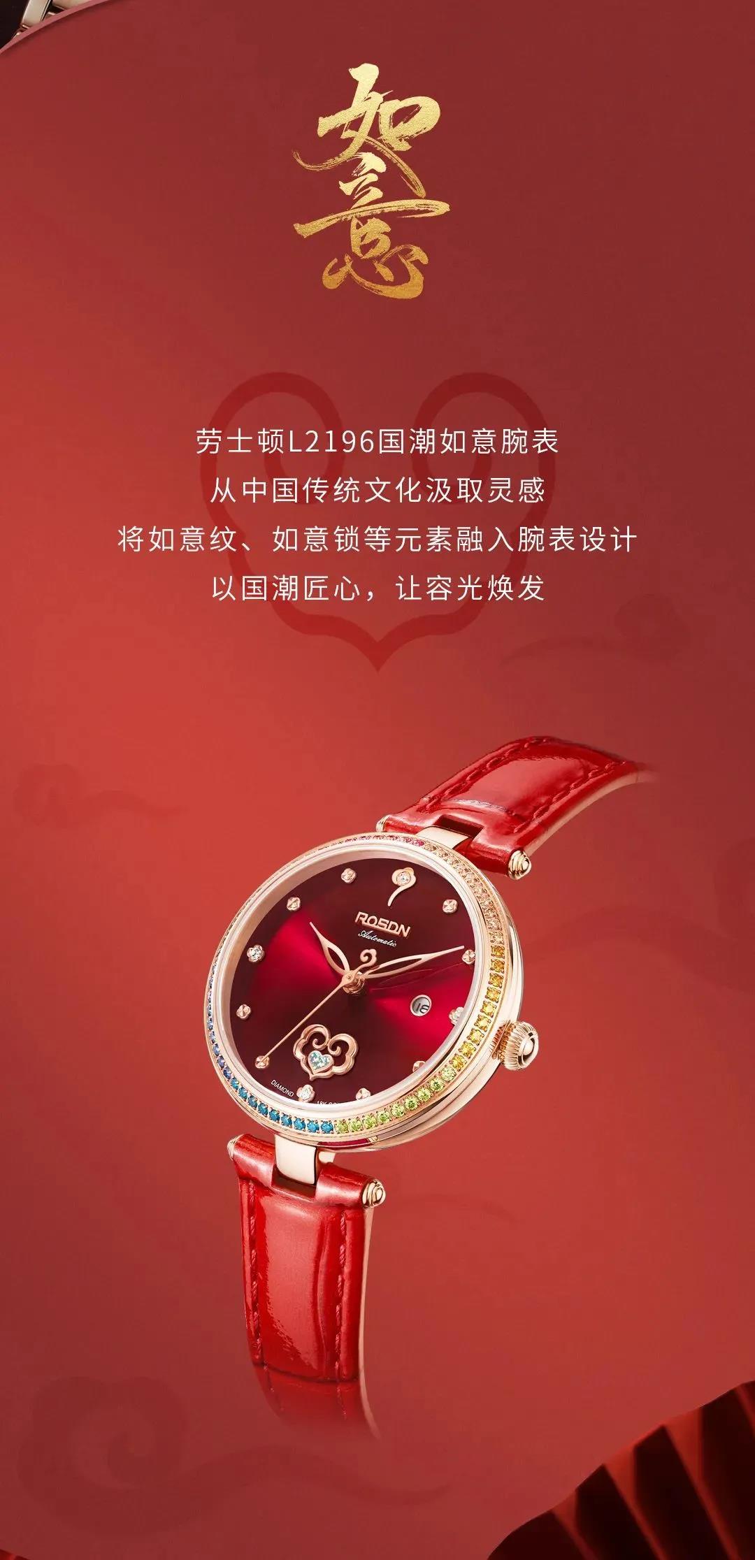 天道酬勤,君子自强。劳士顿为阿Sa的这期拍摄计划,提供的是一款极具代表意义的女性腕表劳士顿L2196“国潮如意”。这款腕表的设计灵感源自中国传统文化中象征着吉祥美好的“如意”,经过劳士顿匠人的精心雕琢,“如意”的概念被融合到小小的方寸之间,很好的诠释了劳士顿对于国潮的解读和思考。