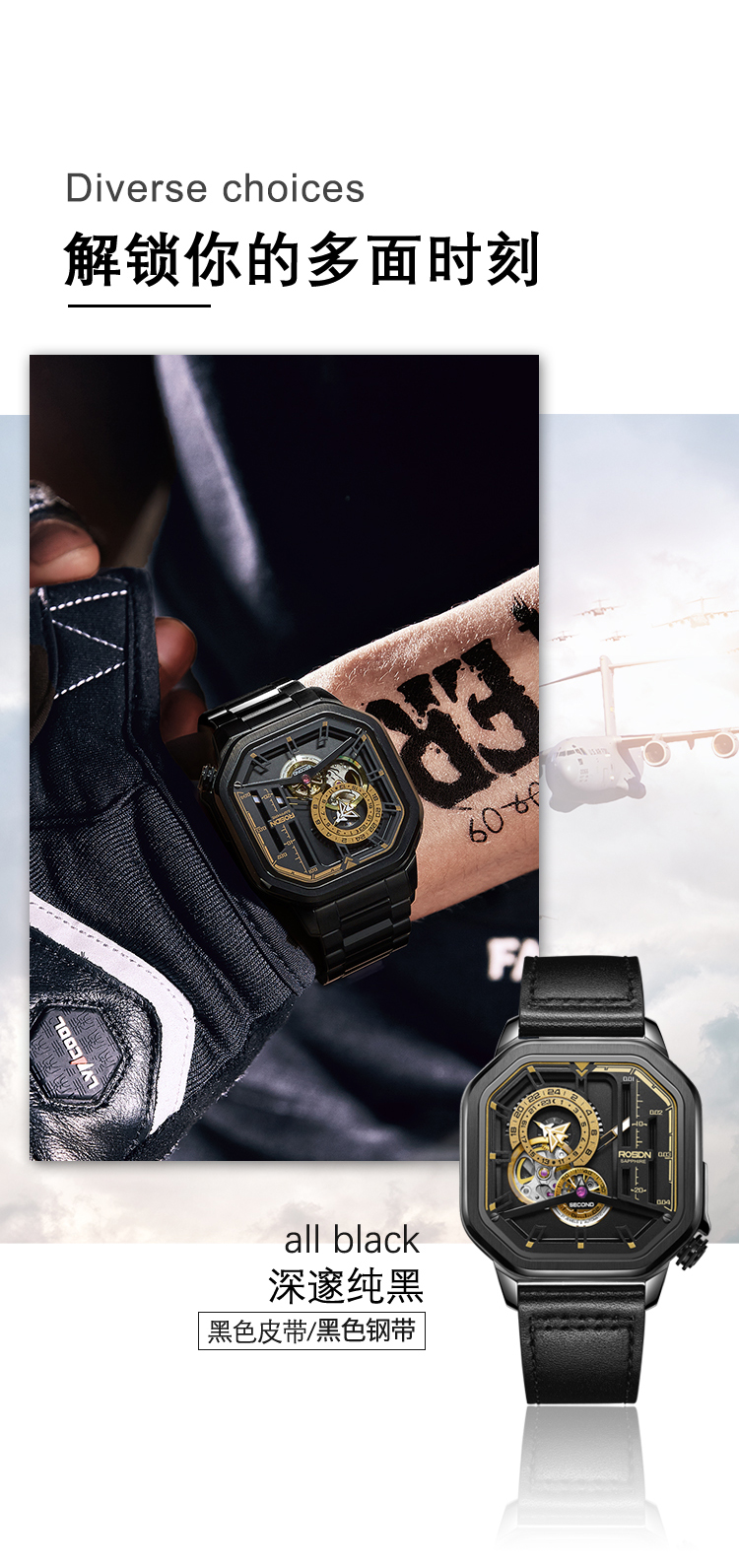 颜色:本黑钢带、本白钢带、本黑皮带、本白皮带