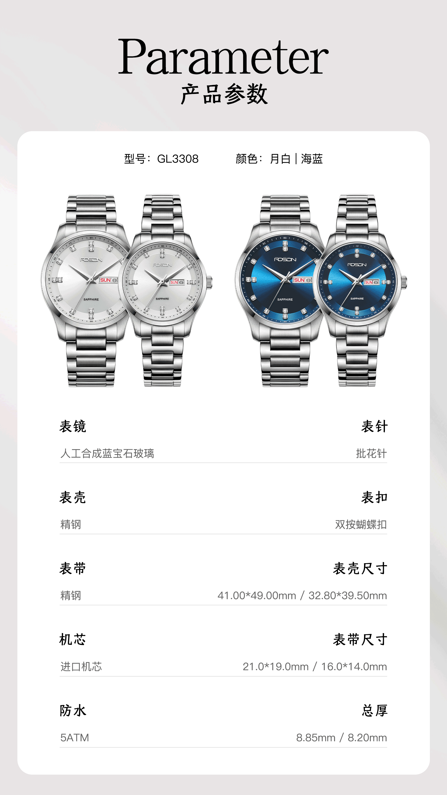 表壳尺寸:41*49mm/32.8*39.5mm