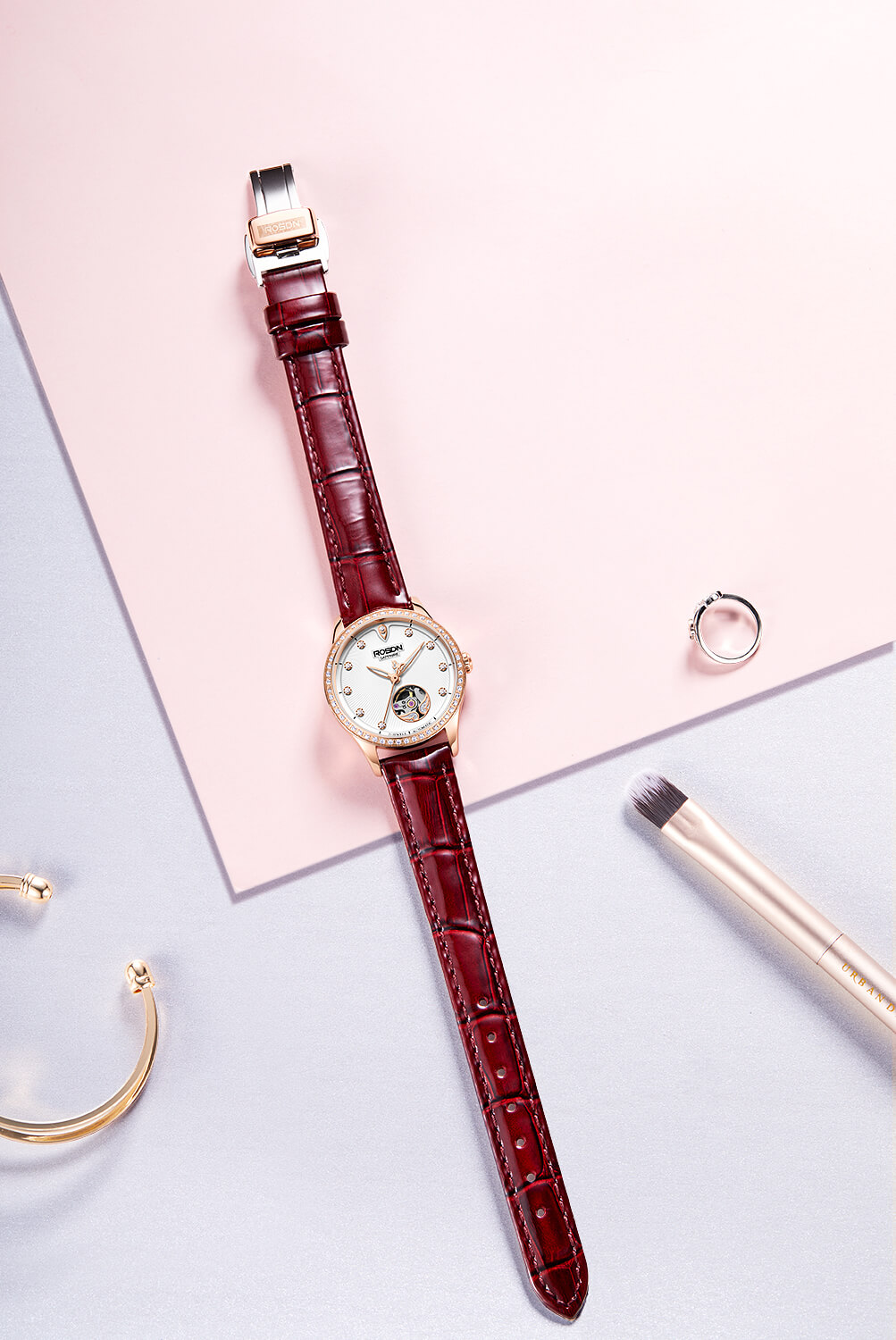 Rose Gold Red Leather