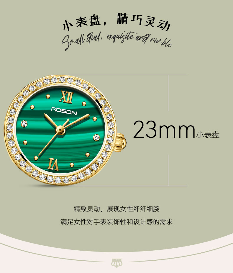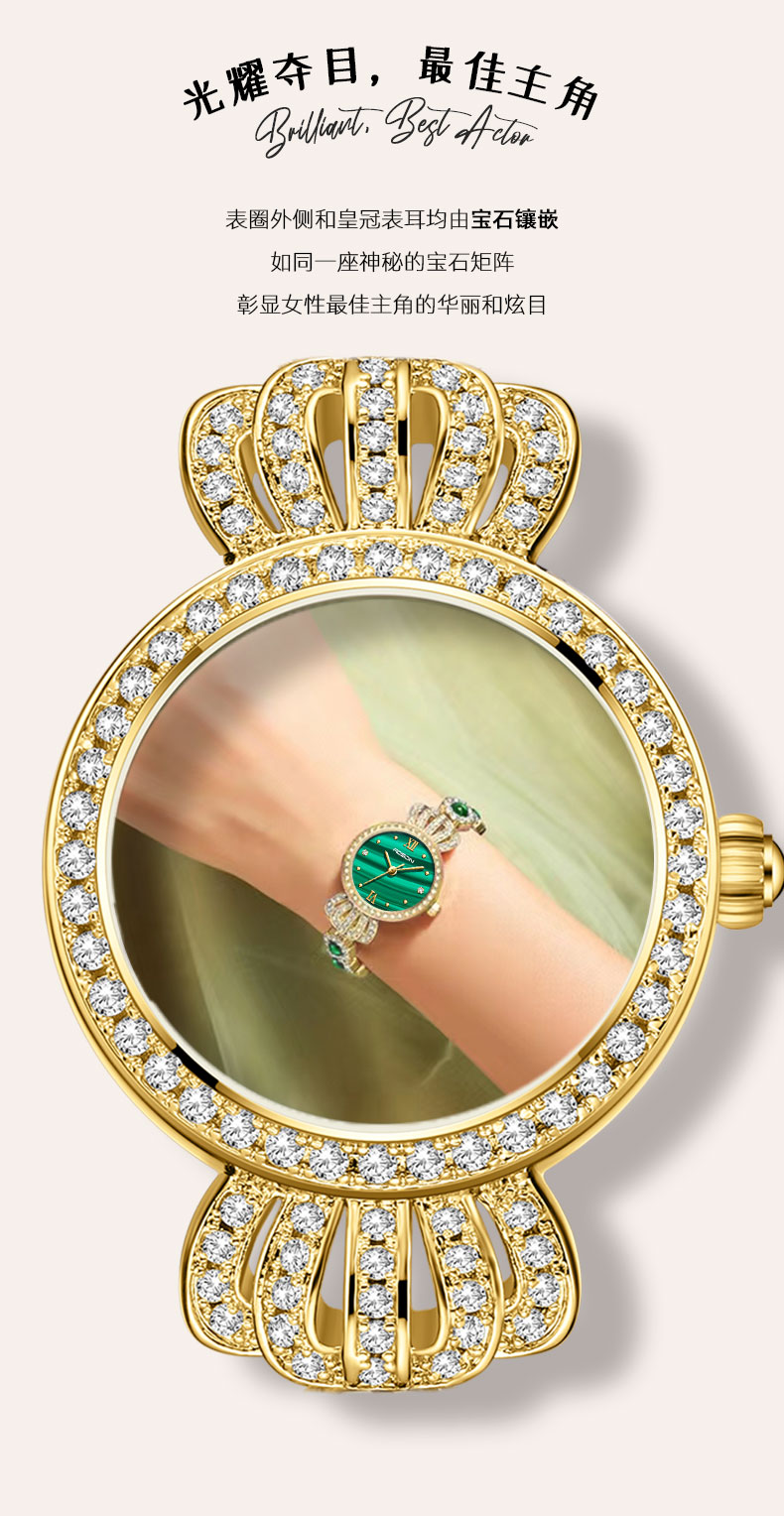 表壳:黄铜+镶白色锆石